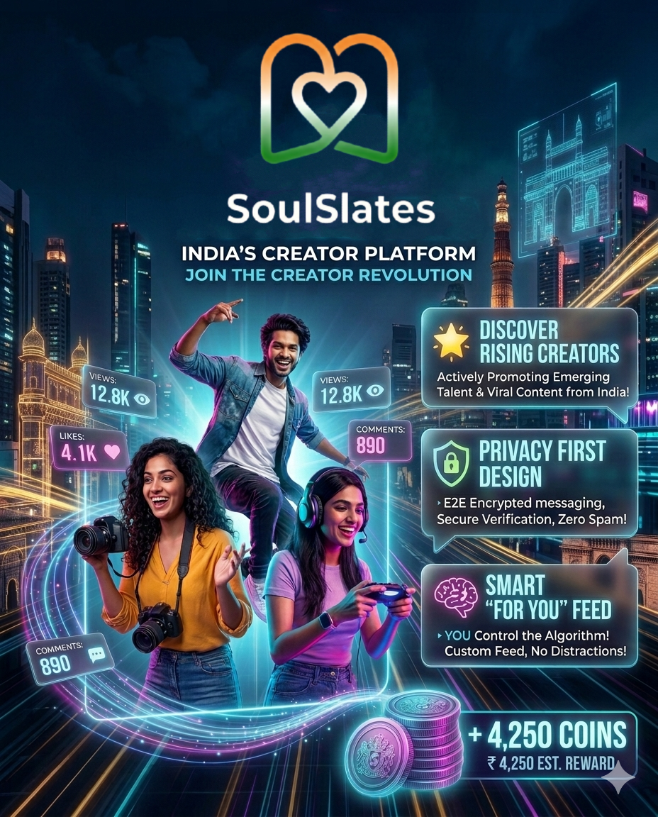 SoulSlates is India's next-gen platform where engagement turns into real Coins. Share content, hit the leaderboards, and get rewarded.